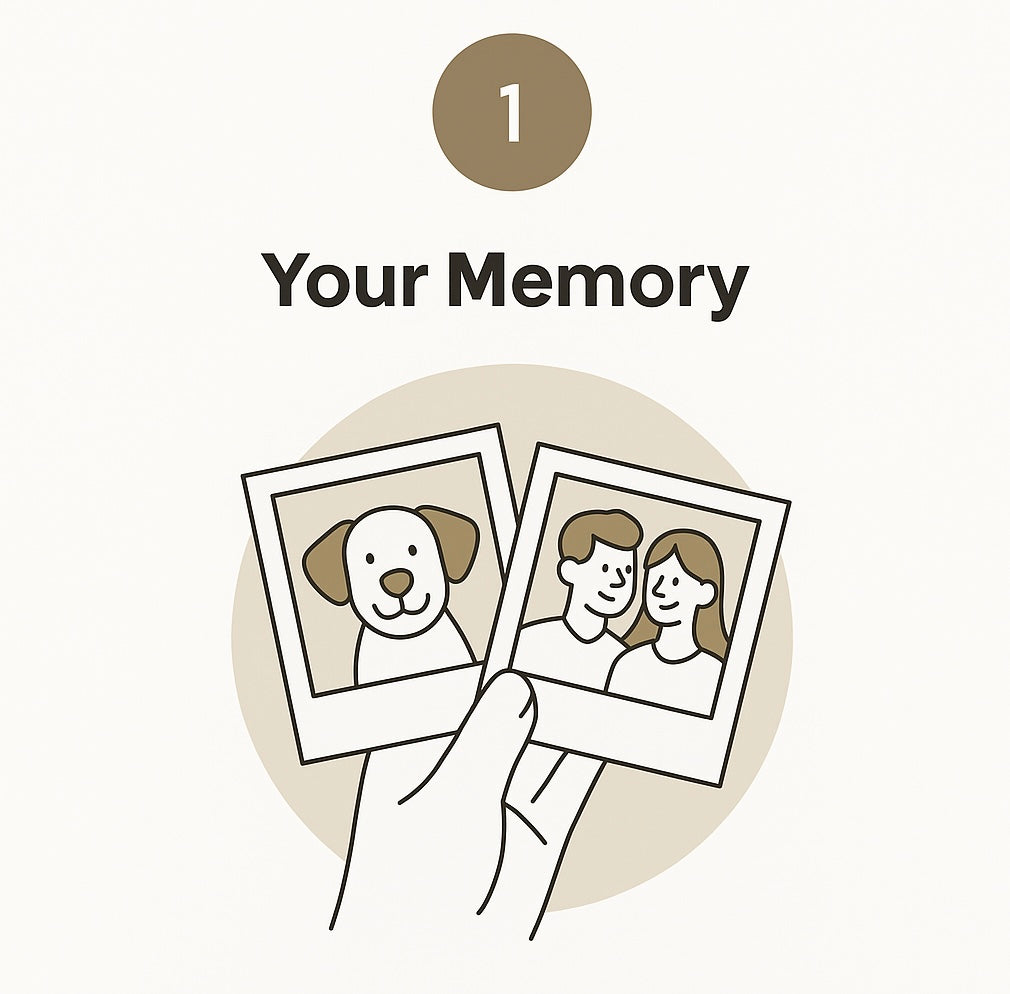 Wir verwandeln dein Lieblingsfoto in eine besondere Erinnerung. Du bestimmst jeden Schritt – vom Design bis zur Freigabe – damit dein Andenken stets liebevoll strahlt.